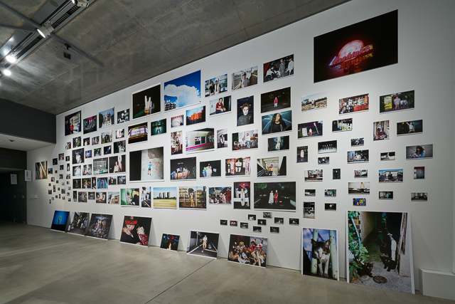 夜のストリートといっても新宿や渋谷ではなく、自分が生まれて愛着のある蒲田や西馬込の夜の路上を歩き、全身をセンサーにしながら情報をすくい取っていて、膨大な情報量を孕んだ多数の写真を整然と並べることなく、額装せずに壁一面を覆っています。あの壁面は、会場で一番高さがありますから、なるべく上まで写真で埋め尽くして、写真に見下ろされているような感覚を鑑賞者が味わえる空間をスナップで実現したいと考えました。ざわめき、うごめく都市の生命のようなもので埋め尽くすイメージです」