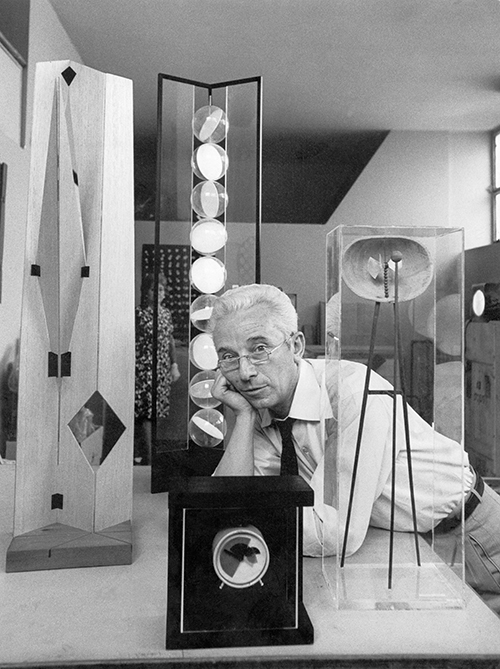 Born Winterhur, Switzerland, 1908. Studied silversmith at the Arts and Crafts School of Zurich City, 1924-1927, then entered Bauhaus. Talented in diverse fields as architect, artist, Grafiker (graphic artist), Gestalter (designer) and writer. Led Concrete Art movement pursuing art based on the way of mathematical thinking. He founded and was the architect of the Ulm School of Design with Inge Aicher-Scholl and Otl Aicher, and was appointed its first Rector in 1953. His philosophy of environmental design had great influence. The Ulm stool / Ulmer Hocker and Junghans watch express his concept of "commodity as cultural asset" and these masterpieces are still in production. Received the Praemium Imperiale in Honour of Prince Takamatsu, 1993, Sculpture category.